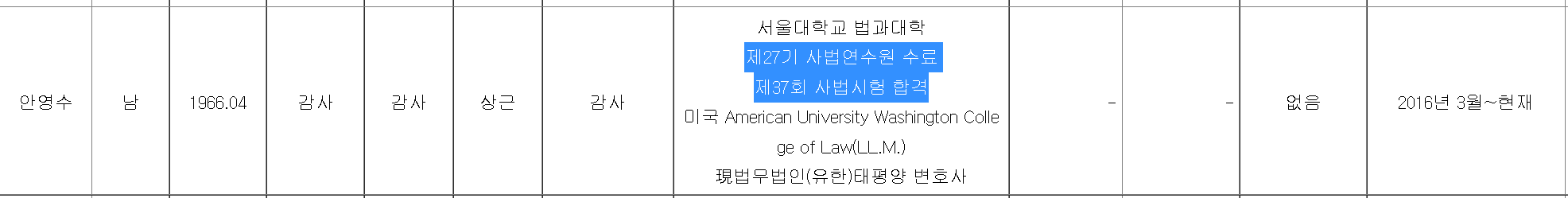 관련주 편입에서 또 중요한 주요 경력사항은 제 27회 사법시험 합격 및 제 27기 사법연수원 수료가 있습니다.