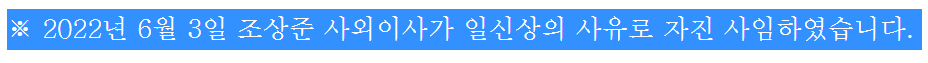 하지만 부방의 반기보고서에 따르면 2022년 6월 3일 조상준 사외이사는 사임하였습니다.