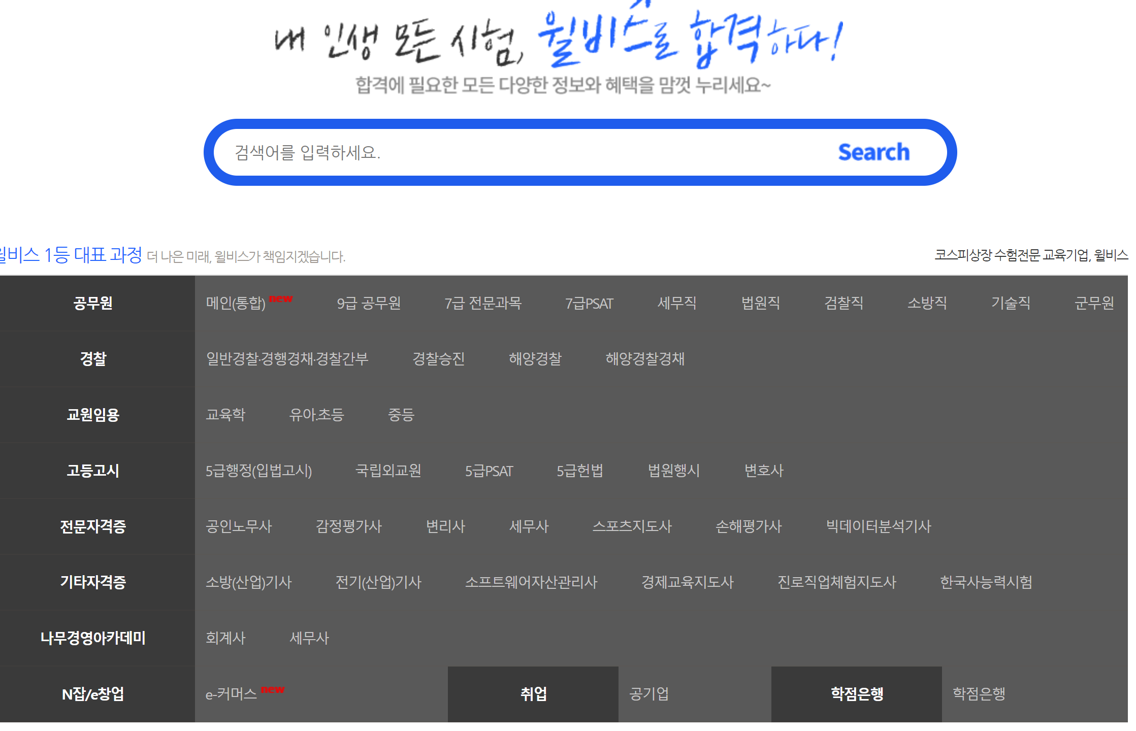 특히, 편입사업부문은 독보적인 브랜드 파워를 가지고 오프라인 학원 총 22개와 인터넷 강의를 제공하는 편입시장 최대 규모를 자랑합니다.