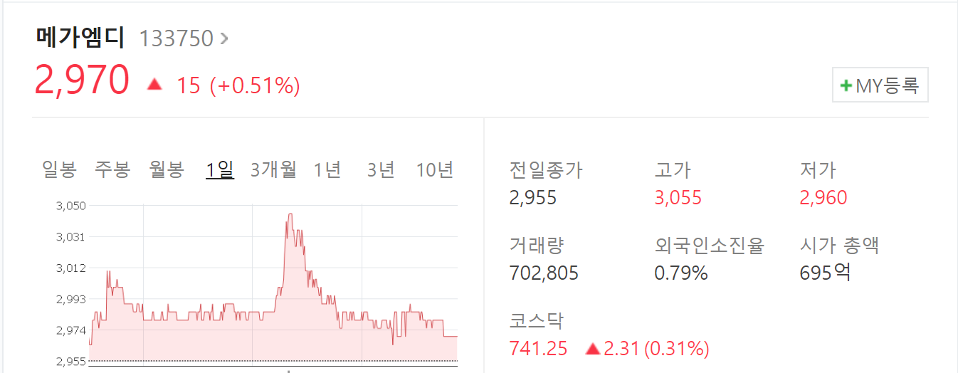 메가엠디는 매년 800억 전후의 매출을 올리고 있으며 영업이익과 당기순이익 모두 흑자를 유지하고 있습니다. 유보율과 부채비율 모두 적정한 수준을 유지중입니다.