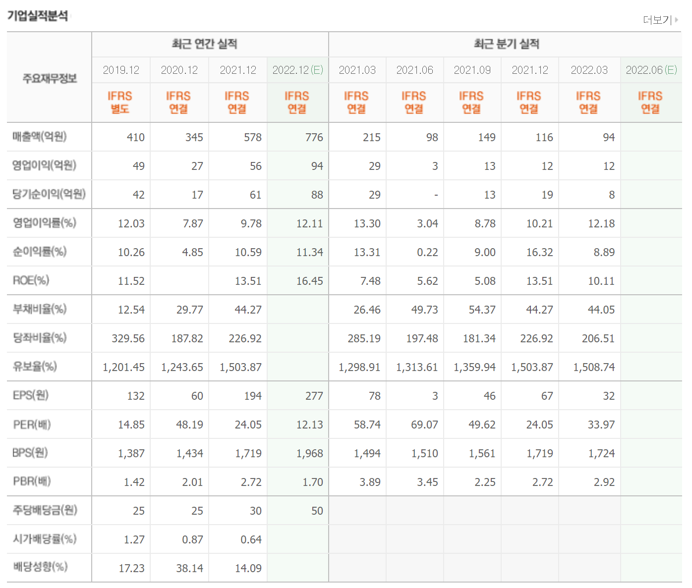 부채비율과 유보율 모두 안정적으로 유지중입니다.