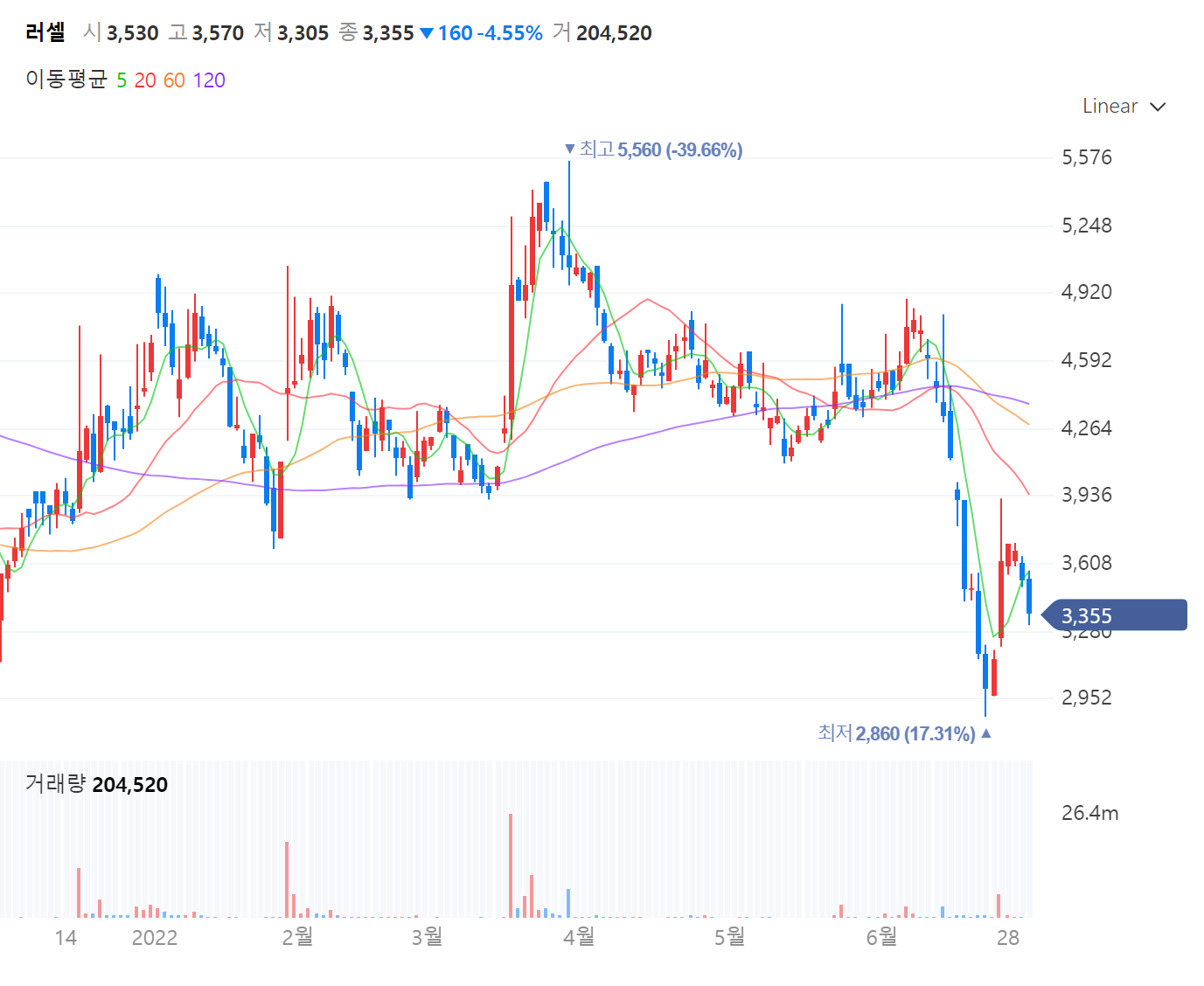 6월 지수하락과 연동하여 하락이 나왔습니다.