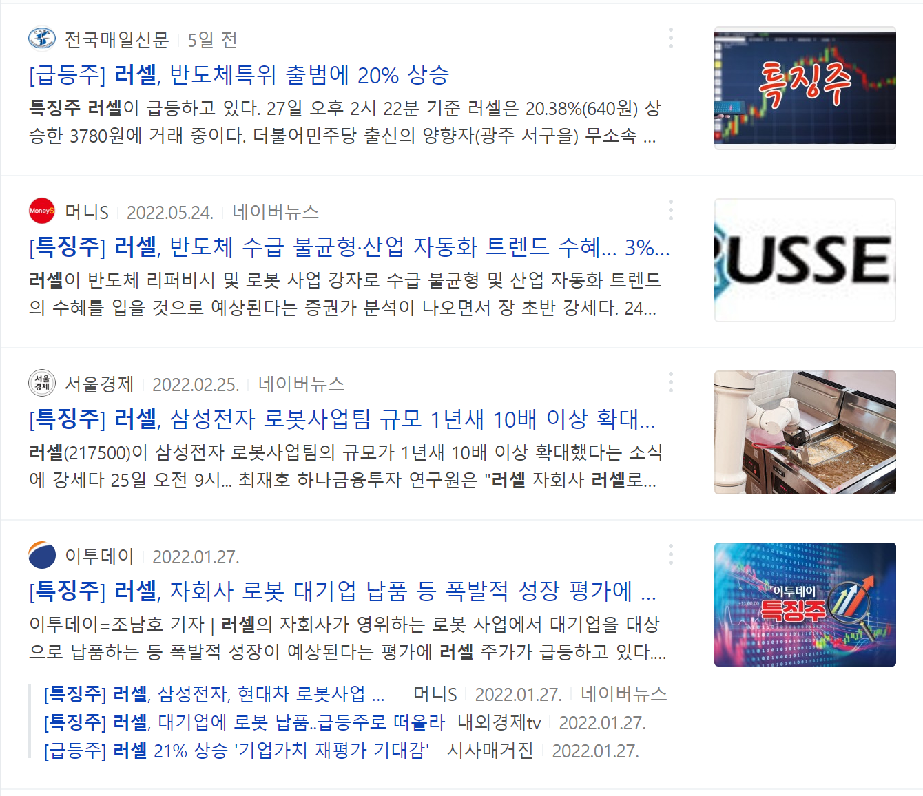 러셀은 통상적으로 로봇이나 반도체 뉴스에 자주 움직이는 모습을 보여줍니다.