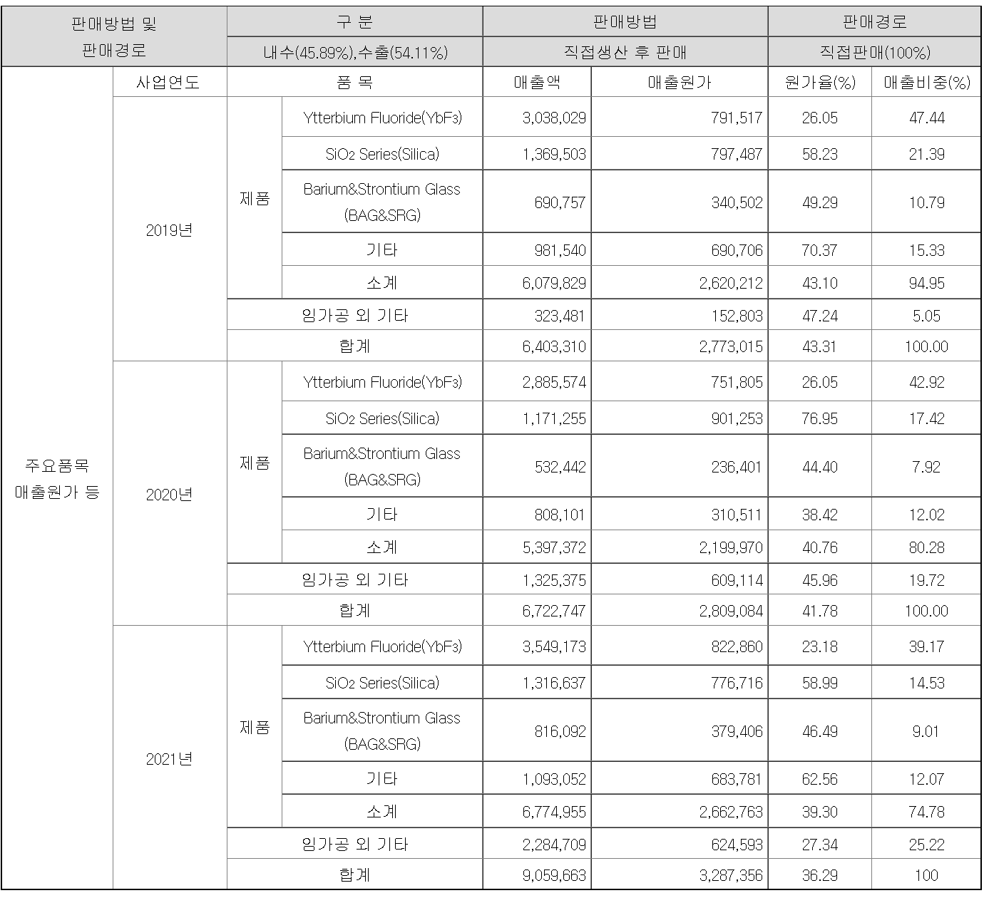 아래 매출 개요를 살펴보면 덴탈 사업분야의 매출 비중이 제일 높은 편이며 다음으로 실리카 계열이 다음으로 비중을 차지하고 있습니다.