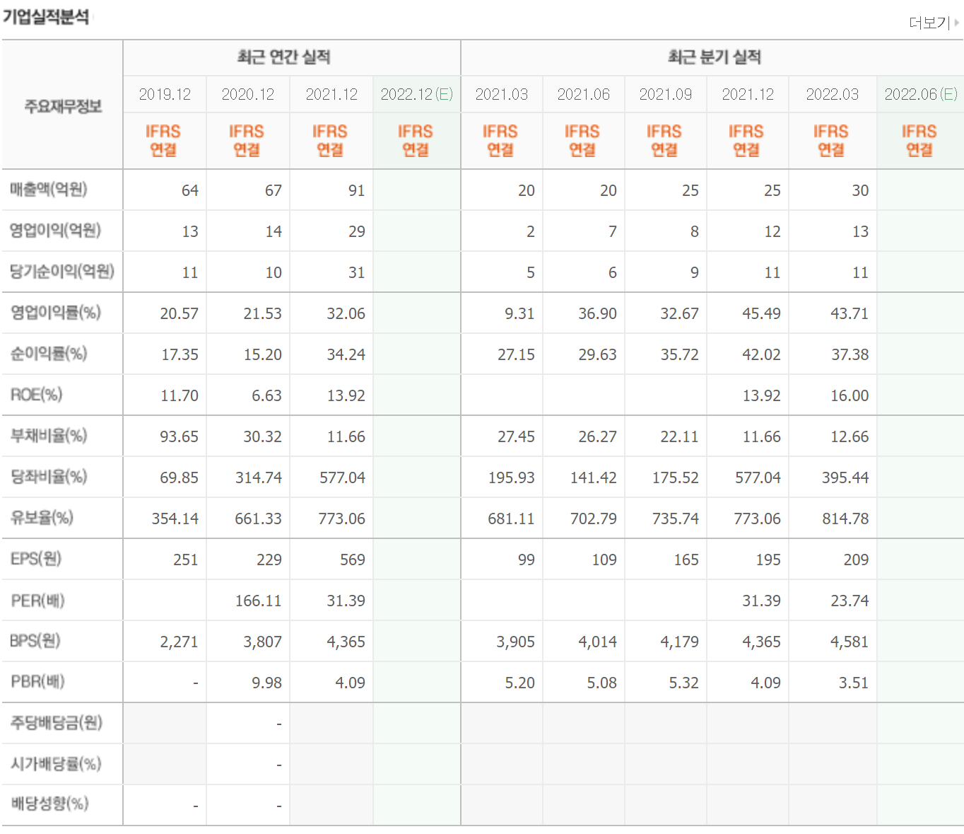 유보율과 부채비율 모두 양호한 수준을 유지 중입니다.
