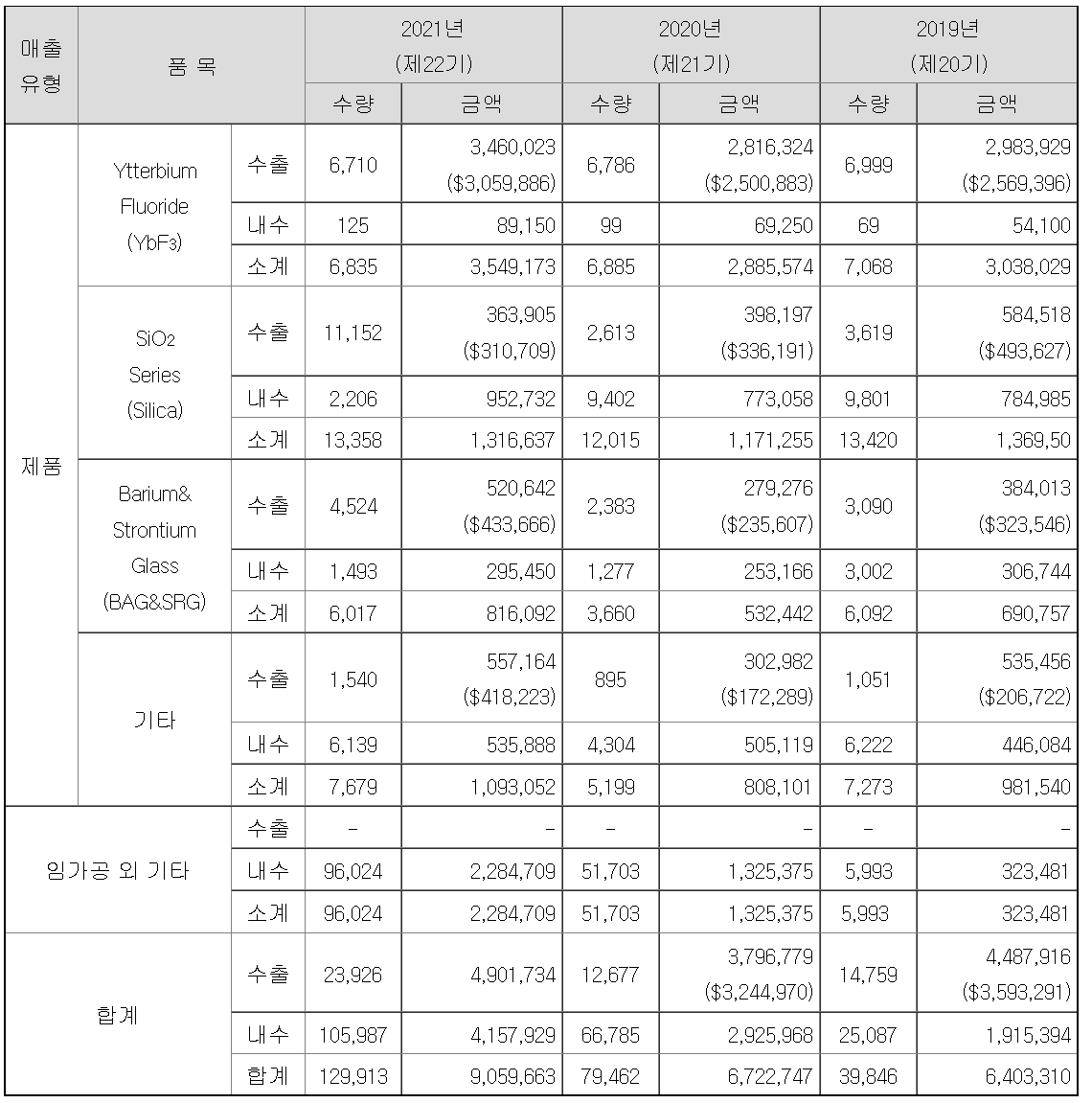 고부가가치인 광학용 PET Film의 안티 블록킹용 소재와 고순도와 균일 입자를 가진 실리카를 제조 판매하는 사업을 영위하고 있습니다.