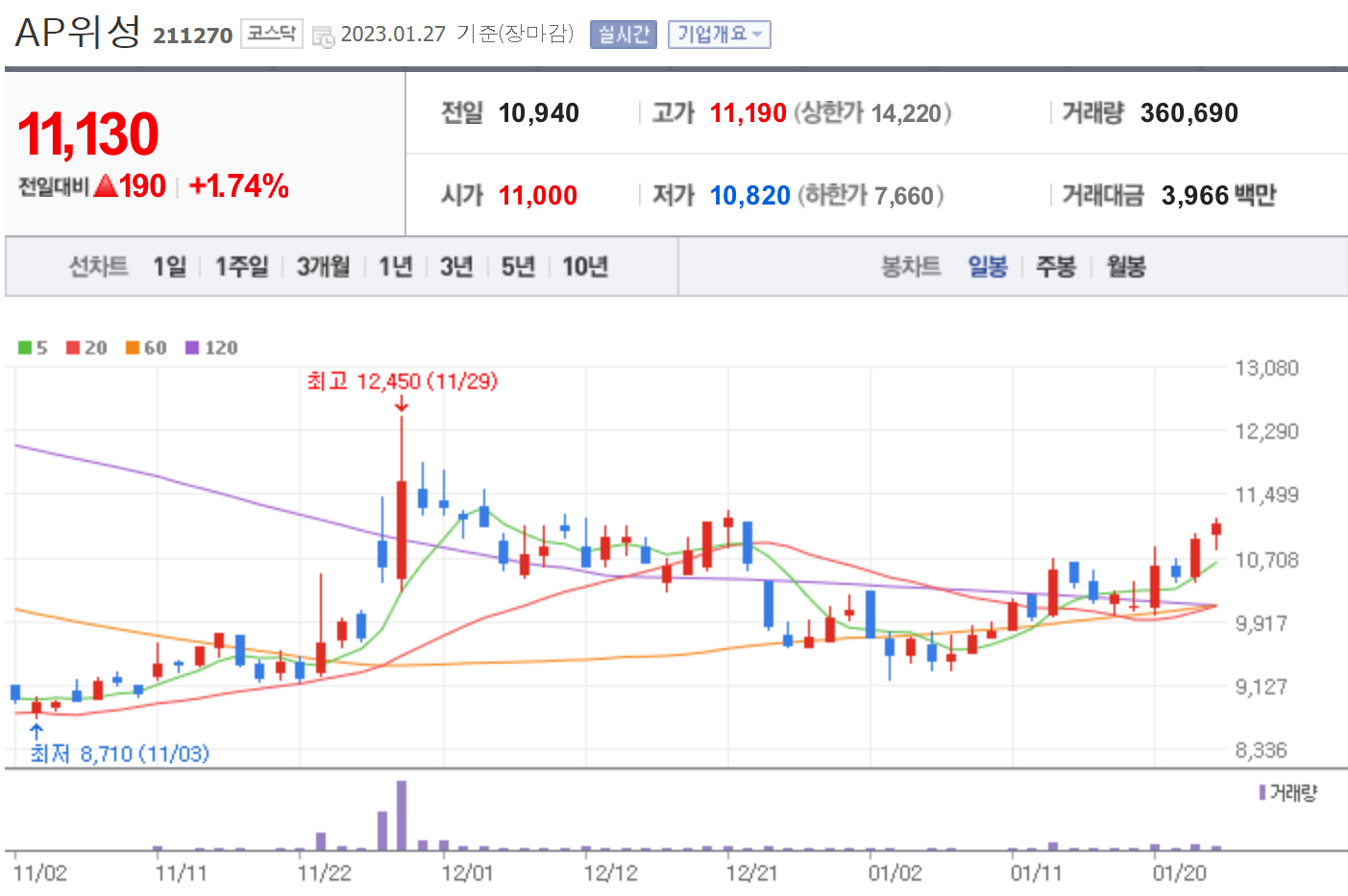 AP위성은 위성통신서비스를 제공하고 있어 스타링크의 국내 서비스 제공에 따른 수혜 기대감에 관련줄로 편입되었습니다.