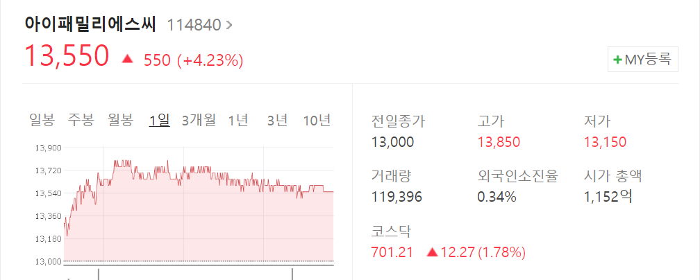 아이패밀리에이씨에서는 롬앤이라는 색조 전문 코스매틱 브랜드를 론칭했습니다. 높은 가성비의 제품을 생산하고 있기에 실내 마스크 해제시 매출 증진 기대감이 있을 것으로 예상되어 관련주로 편입되었습니다.