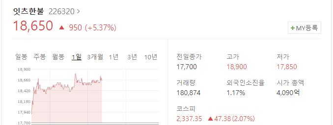 잇츠한불의 브랜드 잇츠스킨에서 색조화장 라인업을 판매하고 있어 관련주로 편입되어 있습니다.