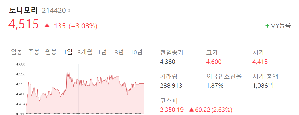 토니모리에서는 다양한 색조화장 라인업을 가지고 있으며 실내 마스크 해제시 매출이 증가할 것이라는 기대감 실내 마스크 해제 관련주로 편입되어 있습니다.