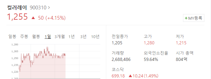 컬러레이는 매년 500억 이상의 매출을 발생시키고 있으며 200억 대의 영업이익과 200억대 당기순이익을 올리고 있습니다. 유보율은 다소 작은 편이지만 유보율에 비해 부채비율이 상대적으로 작은 점이 매력적입니다. 단, 중국계 회사라는 점이 다소 리스크입니다.
