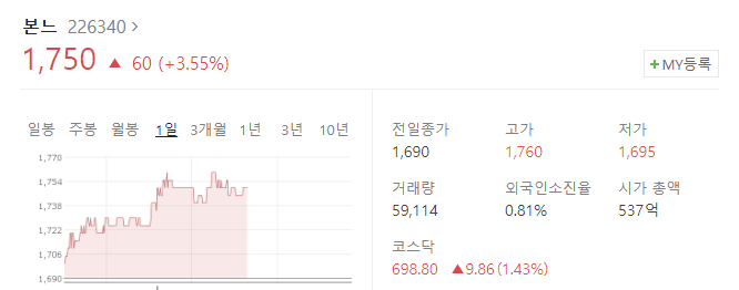 본느의 자체 브랜드인 터치인솔은 기준에 얽매이지 않고 나다움을 자유롭게 표현할 수 있도록 돕는 글로벌 뷰티 브랜드 입니다. 해당 브랜드는 색조화장 위주의 제품을 생산하고 있습니다. 이에 실내 마스크 해제시 수혜를 입을 것으로 예상되어 관련주로 편입되었습니다.