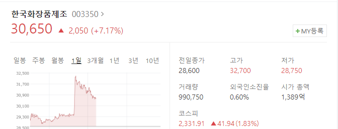 코스맥스는 서울메이드 브랜드에서 색조화장품을 판매하고 있습니다. 이에 수혜 기대감으로 관련주로 편입되어 있습니다.