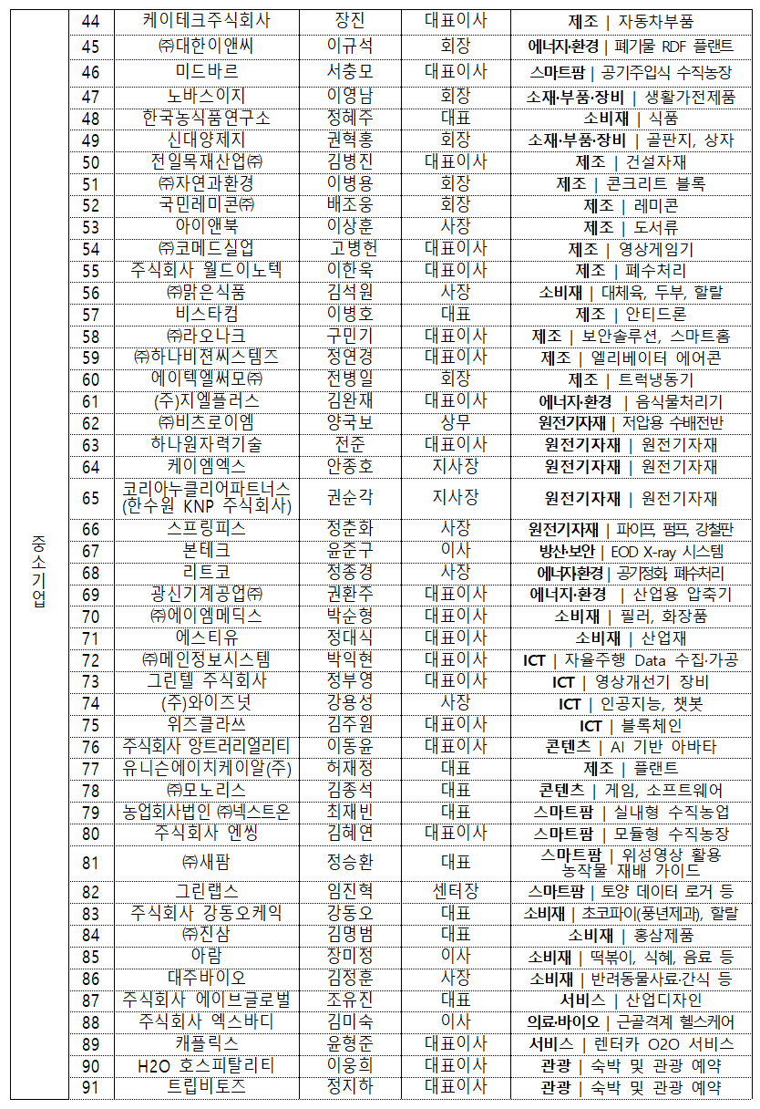 참가기업을 보면 원전, 스마트팜, 건설, 엔터, 화장품 등 다양한 분야로 구성이 되어있는데
