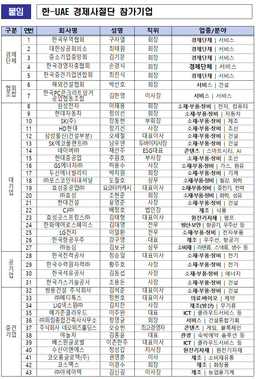 여기까지 아랍에미리트연합 UAE 경제사절단 리스트 정리였습니다.