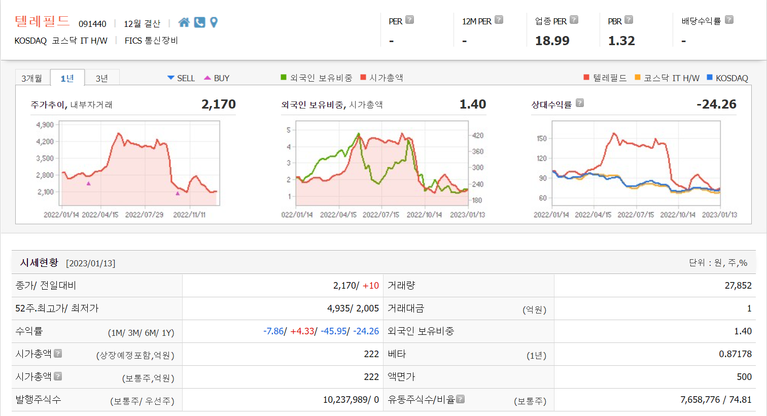 텔레필드는 2019년 500억 매출을 시작으로 2020년 2021년 300억 중반에서 400억대 매출을 올리고 있으나 2년 년 연속 적자를 유지하고 있씁니다. 유보율과 부채비율은 그렇게 괜찮은 편은 아닙니다.