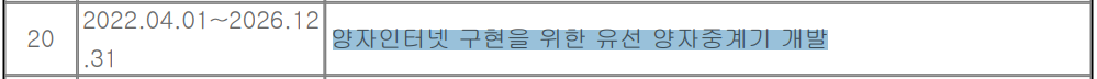 2022녕 4월부터 2026년 12월까지 양자인터넷 구현을 위한 유선 양자중계기 개발 중입니다.