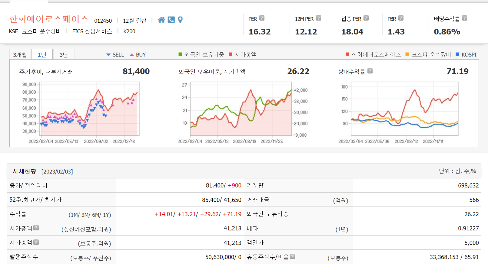 작성일 기준 시가총액은 41,213억 이며, 현재가는 81,400원 입니다.