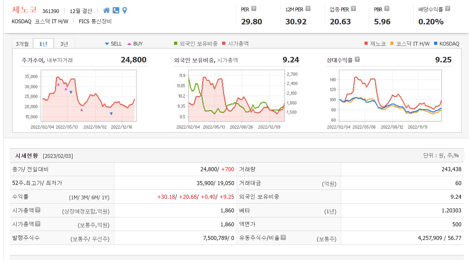 작성일 기준 시가총액은 1,860억 이며, 현재가는 24,800원 입니다.
