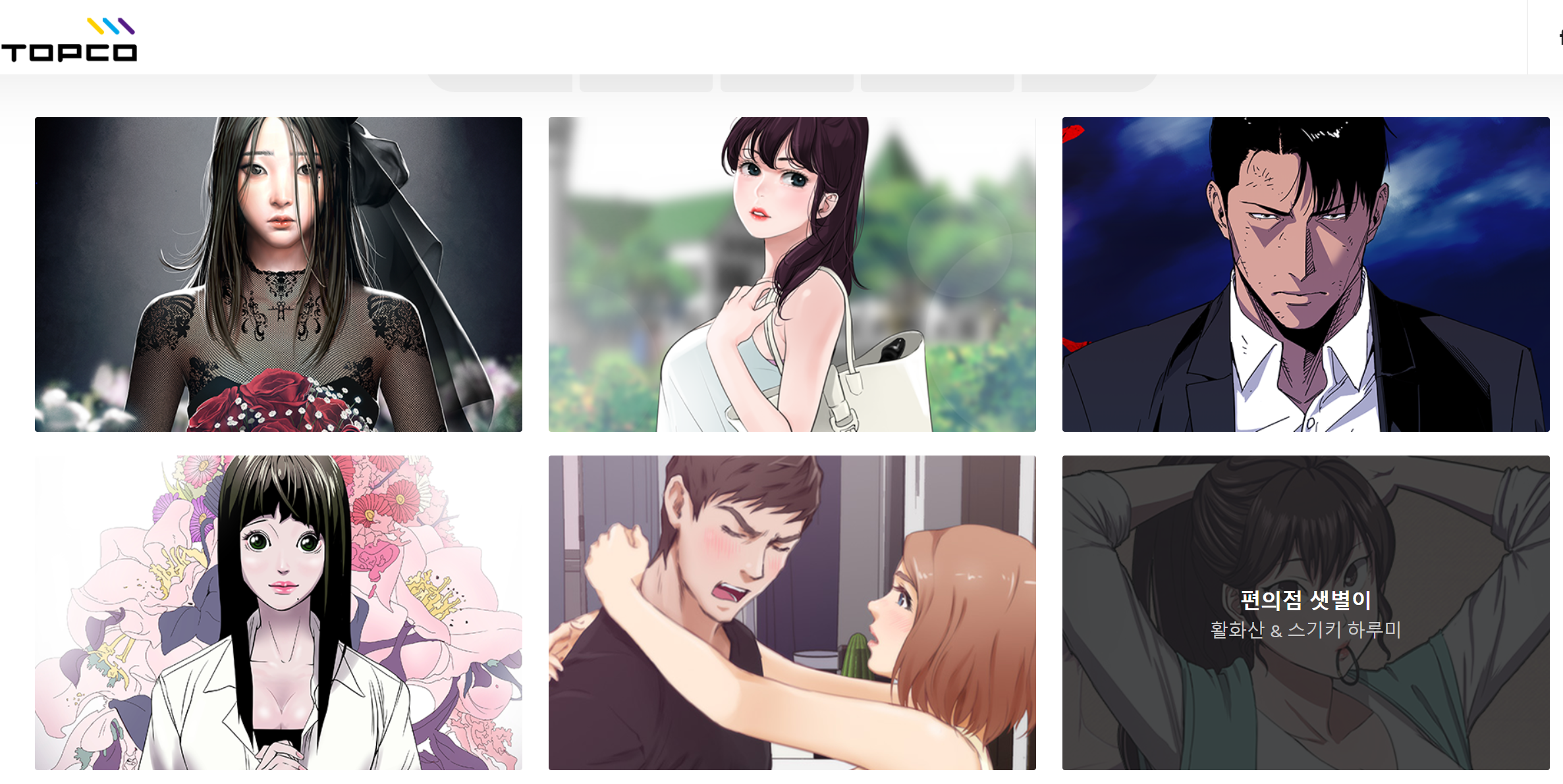 탑코미디어에서는 탑코라는 브랜드로 웹툰 사업을 진행하고 있으며 대표작으로는 드라마 원작으로 유명한 편의점 샛별이가 있습니다.