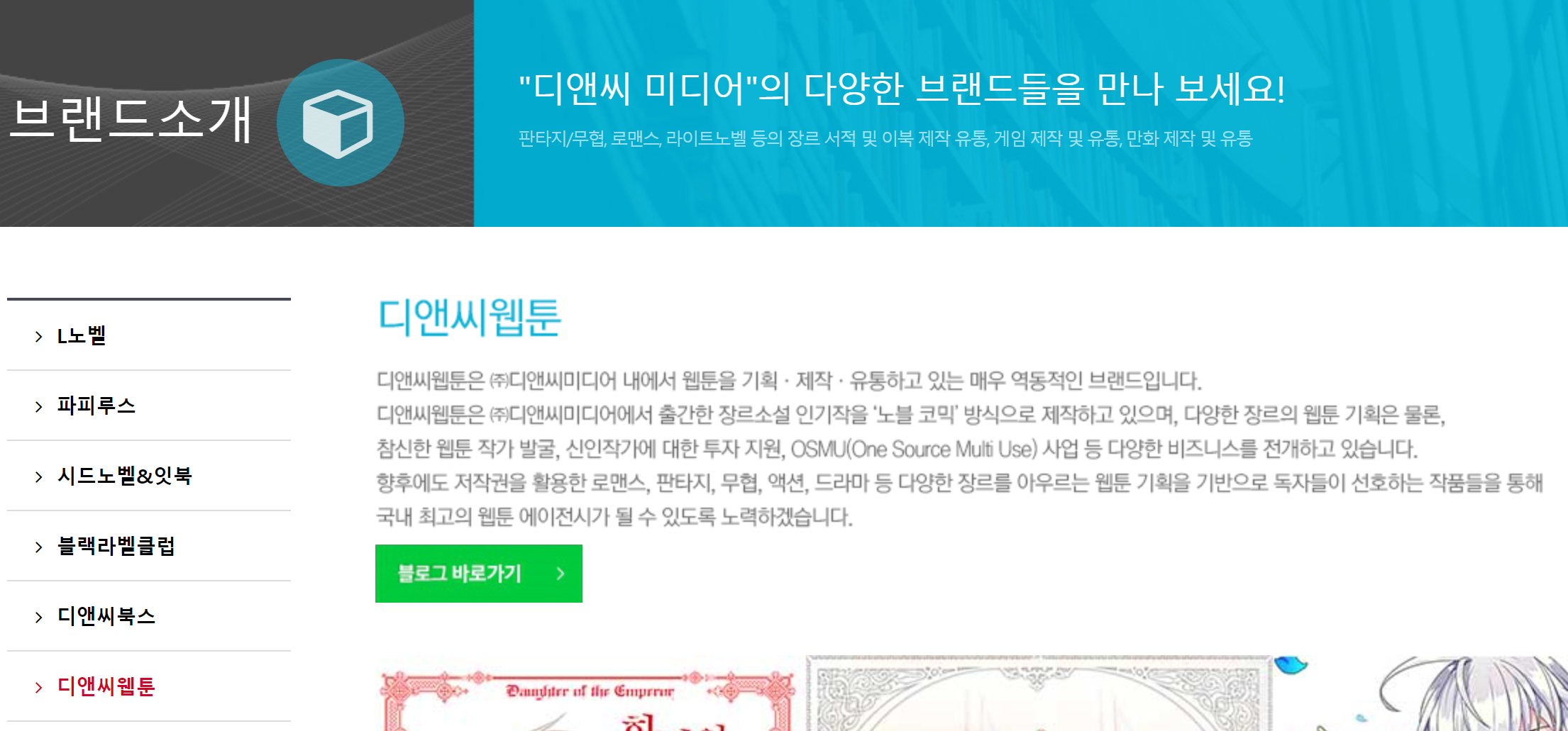 대원미디어는 스토리작이라는 브랜드로 웹툰 및 웹소설을 제작 및 발굴하는 사업을 하고 있습니다.