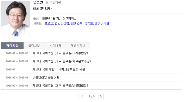 우선 유승민의 인물정보를 먼저 확인해보겠습니다.