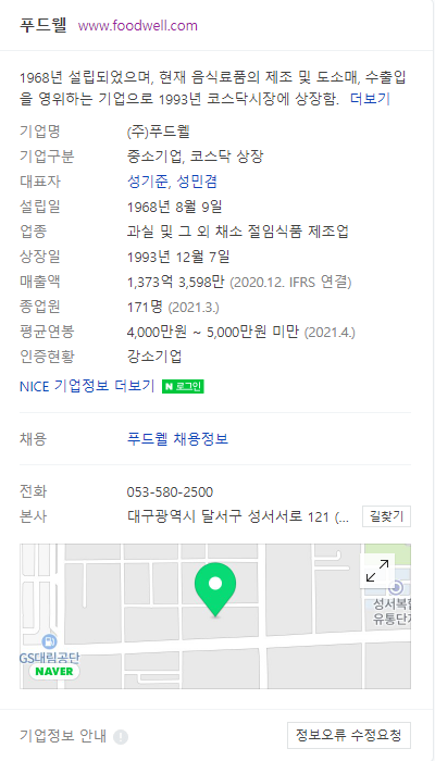 푸드웰은 대구 소재 음식료품 제조 기업입니다.