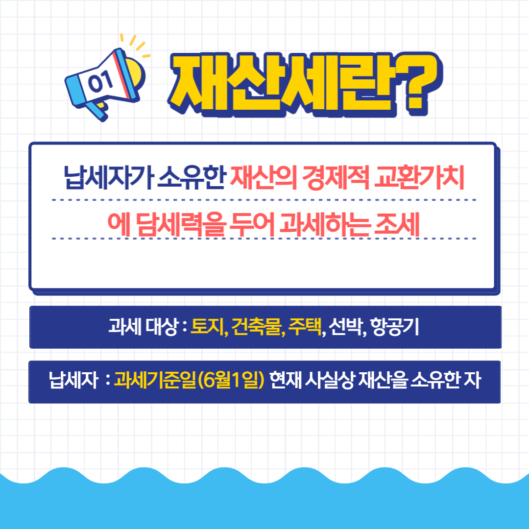 재산세는 토지, 건축물, 주택, 선박, 항공기를 대상으로 과세를 하며