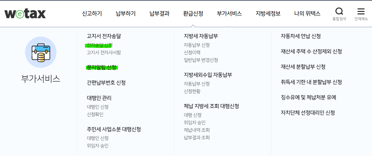 전자송달 신청 및 문자알림 신청