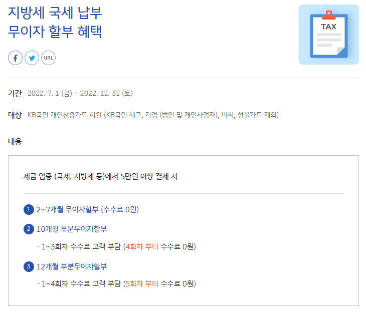 | 재산세 납부시 카드사별 무이자 할부 기간 및 혜택 정리 및 비교 (0) | 2022.07.25 |