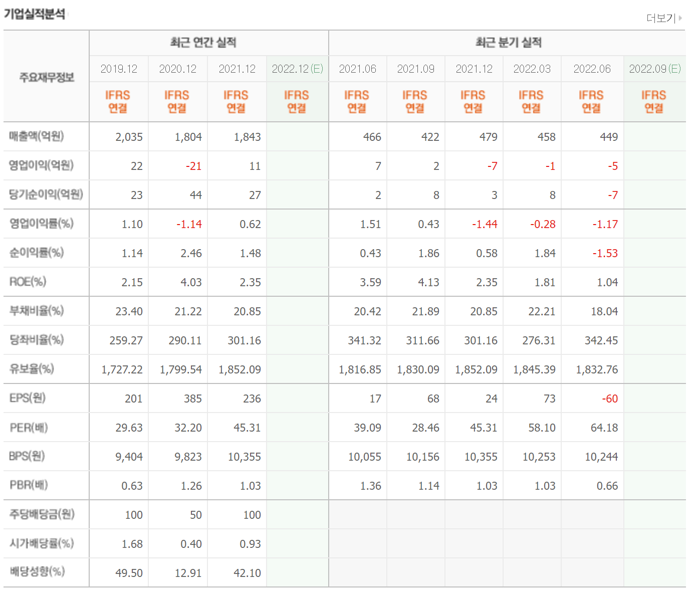 매년 1000억 후반대 매출을 발생시키고 있으며 2020년부터 다소 매출이 감소하였습니다. 영업이익과 당기순이익은 흑자를 유지중입니다.