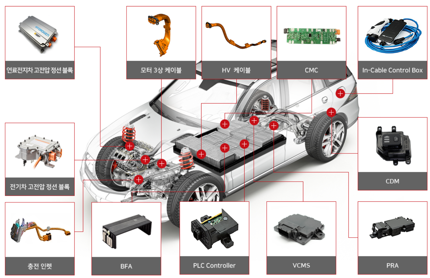 유라코퍼레이션 친환경차 공급 부품은 아래와 같습니다.