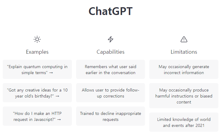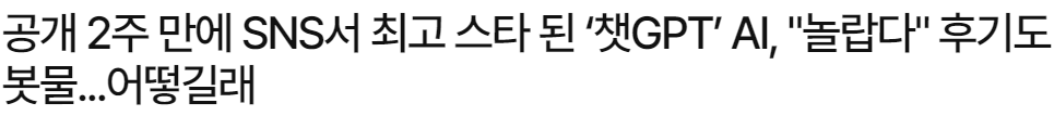 2022년 12월 1일 미국의 OpenAI에서 챗봇 서비스 'ChatGPT'를 공개했습니다.