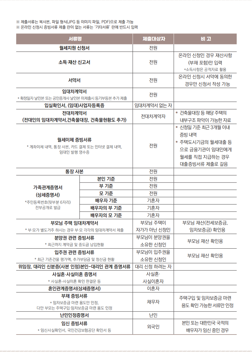 1. 월세지원 신청서 (반드시 필요)
