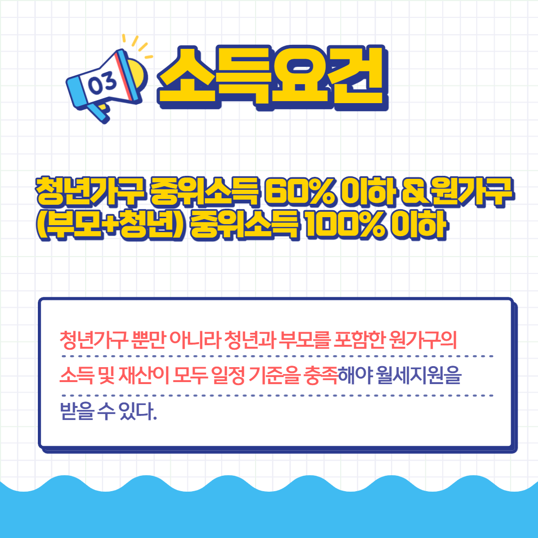여기서 보증금과 월세 금액이 충족한다 하더라도 소득요건에 부합하지 않으면 지원을 받을 수 없습니다.