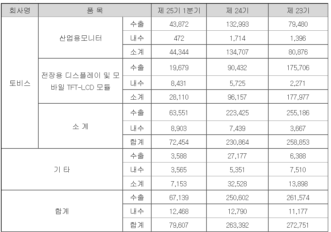 전장의 경우 24기에 매출이 일부 감소하였으나 내수 쪽에서 매출이 증가한 것을 볼 수 있습니다.