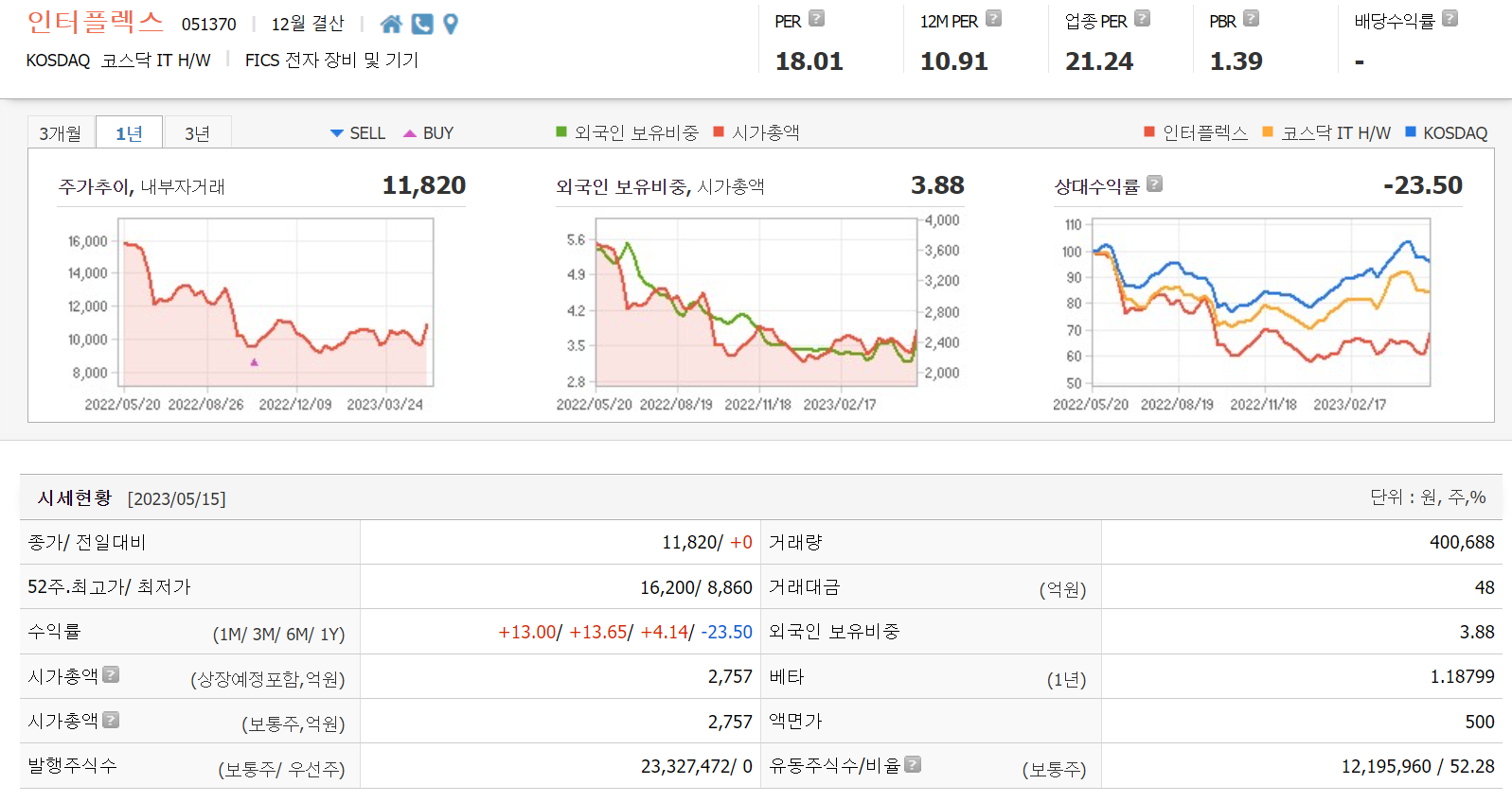 인터플렉스는 KOSDAQ 시장에 2003/01/22에 상장한 기업이며 종목코드는 051370입니다. 작성일 기준 시가총액은 2,687억 이며, 현재가는 11,520원 입니다. 동사는 1994년 설립되어 2003년 코스닥시장에 상장된 연성인쇄회로기판(FPCB) 제조업체입니다. 베트남에 위치한 INTERFLEX VINA CO.,LTD를 연결대상 종속회사로 보유하고 있습니다. 삼성전자, 삼성디스플레이 등이 주요 고객사입니다. 영풍전자, 비에이치 등이 주요 경쟁사입니다. 현지 고객 요구에 따라 중국 및 베트남 출자회사에 CAPA 증설 투자를 진행하는 등 시장 수요에 적극 대응하고 있습니다.