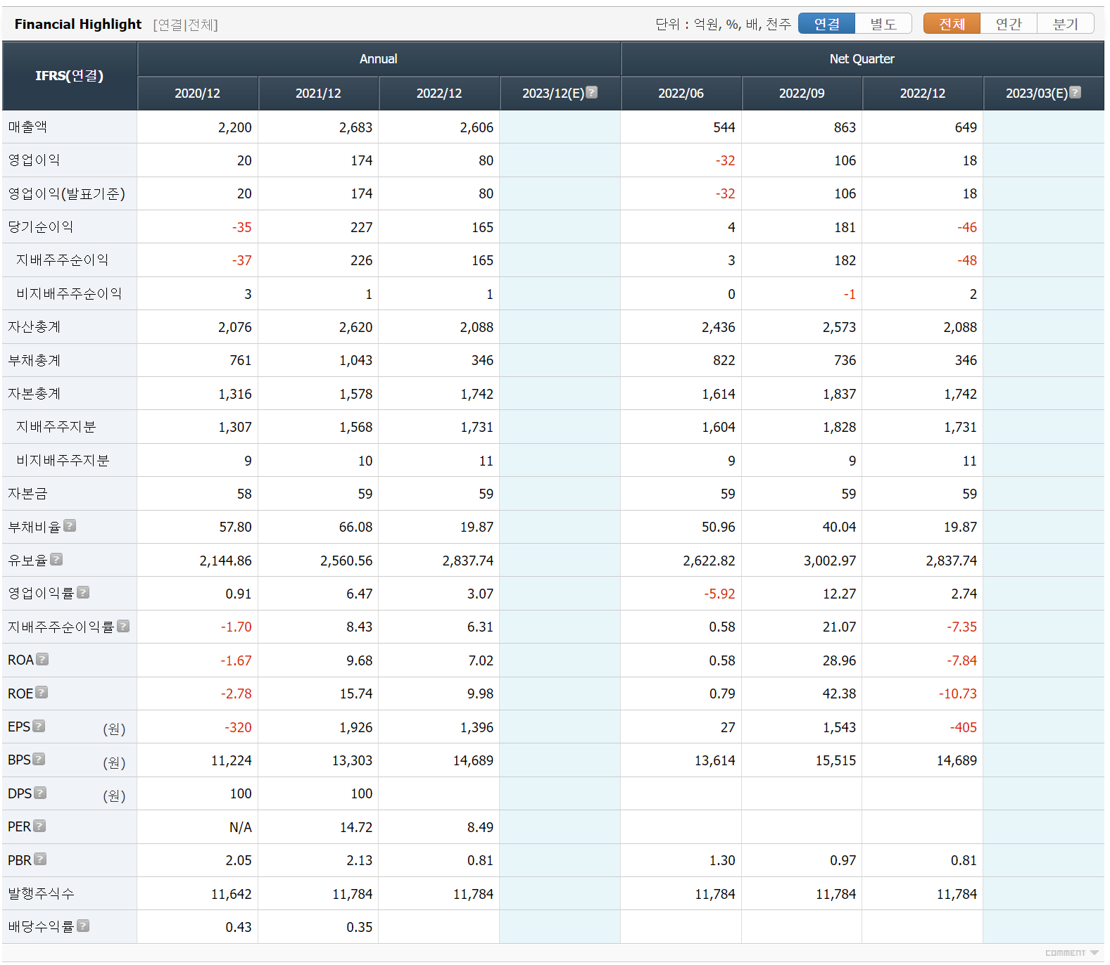 2022년 12월 전년동기 대비 연결기준 매출액은 0% 증가, 영업이익은 0% 증가하였습니다. IT부품 제조 사업부문의 경우, 최근 폴더블 스마트폰의 등장 및 증가에 따라 동사가 독점적인 기술력을 보유하고 있는 내장힌지 등 신규 제품의 수요 역시 증가하고 있습니다. 신규사업으로 전기차용 부품 제조 등을 통해 전기차를 포함한 자동차 시장에 본격 진출할 계획을 가지고 있으며, 특히 전기차 시장과 밀접한 관련이 있을 것으로 전망되는 중입니다.