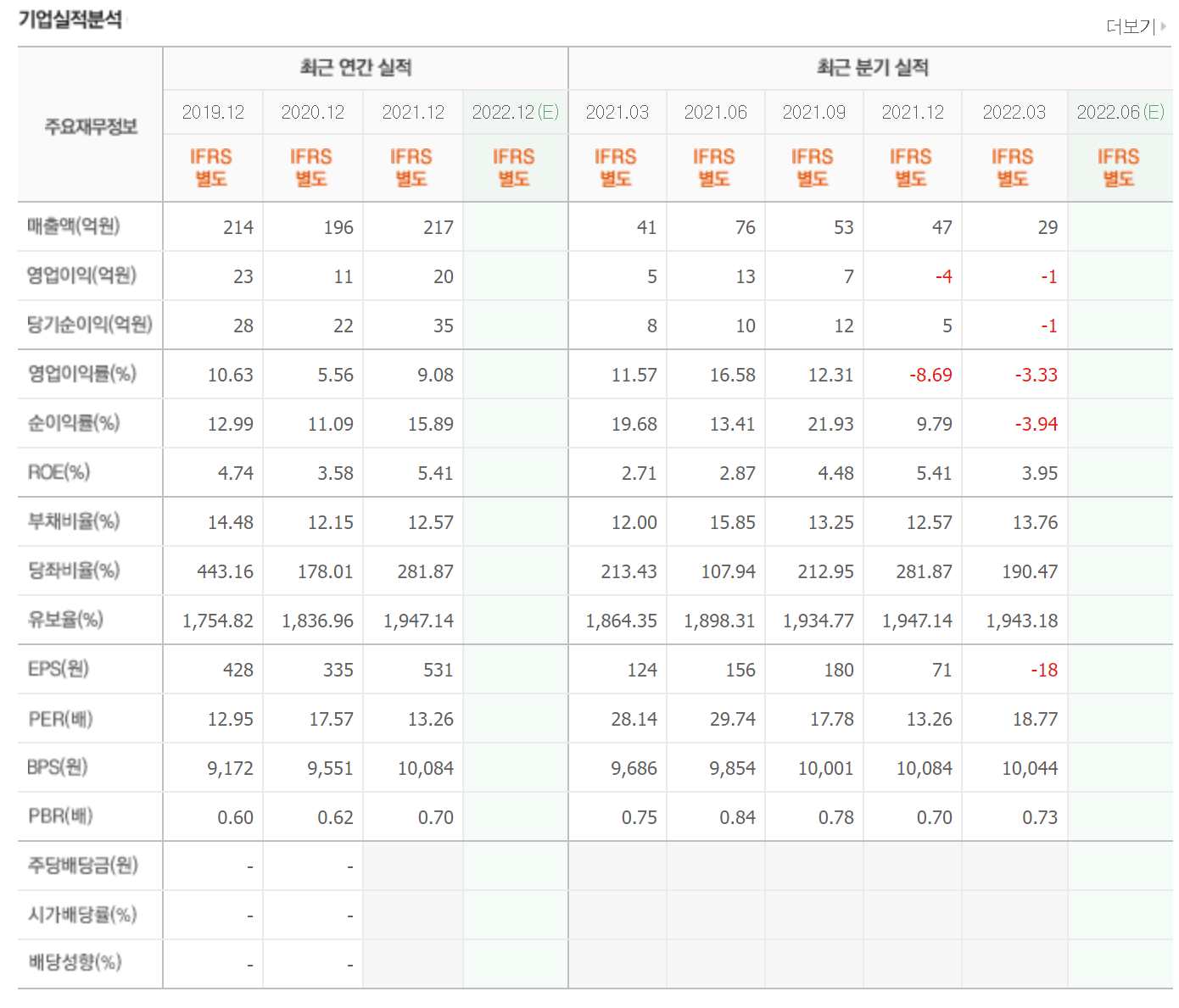 제가 항상 중요하게 보는 유보율과 부채비율이 완벽에 가깝습니다.