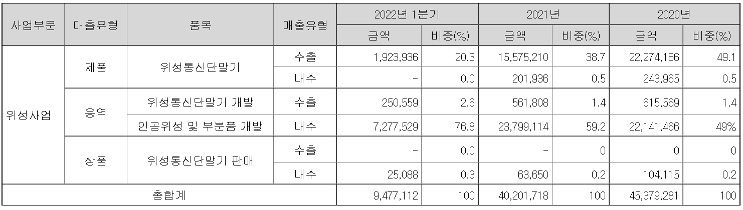 | THURAYA Telecommunications Company | 2020.4.8 | 2020.4.7~2020.10.30 | 위성휴대폰 납품 | 6,147,265,600 | 위성 통신 기기 납품 | 매출 |