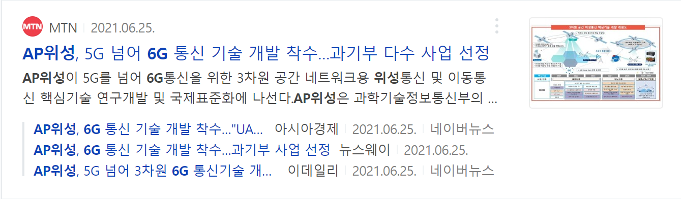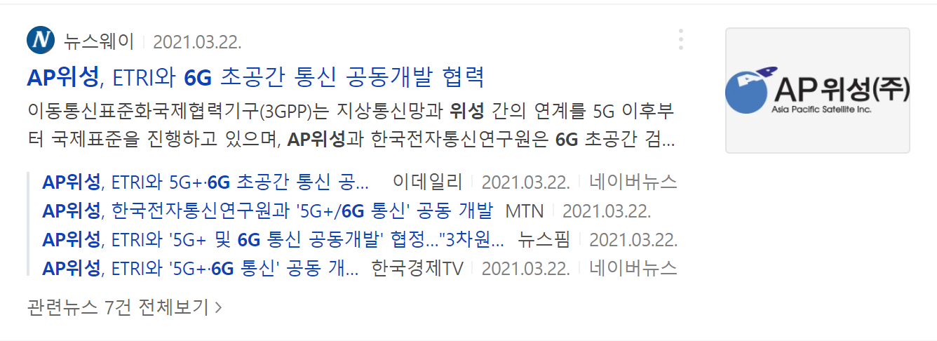 AP위성의 경우 뉴스 분석을 해 본 결과 주요 키워드가 2가지가 있습니다.
