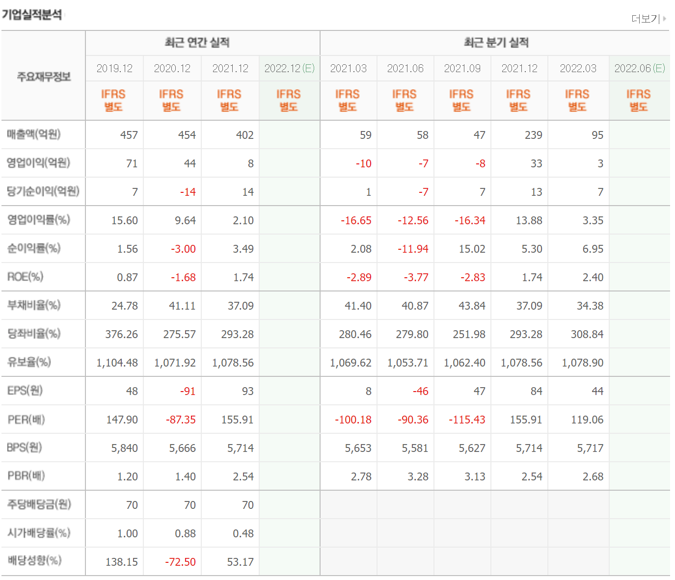 유보율 역시 높은 수준을 유지하면서 기업의 존폐에는 크게 영향이 없는 상태입니다.