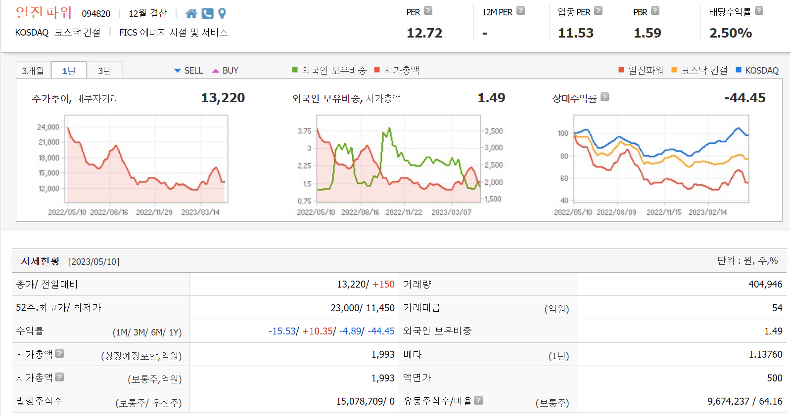 일진파워는 KOSDAQ 시장에 2007/11/06에 상장한 기업이며 종목코드는 094820입니다.