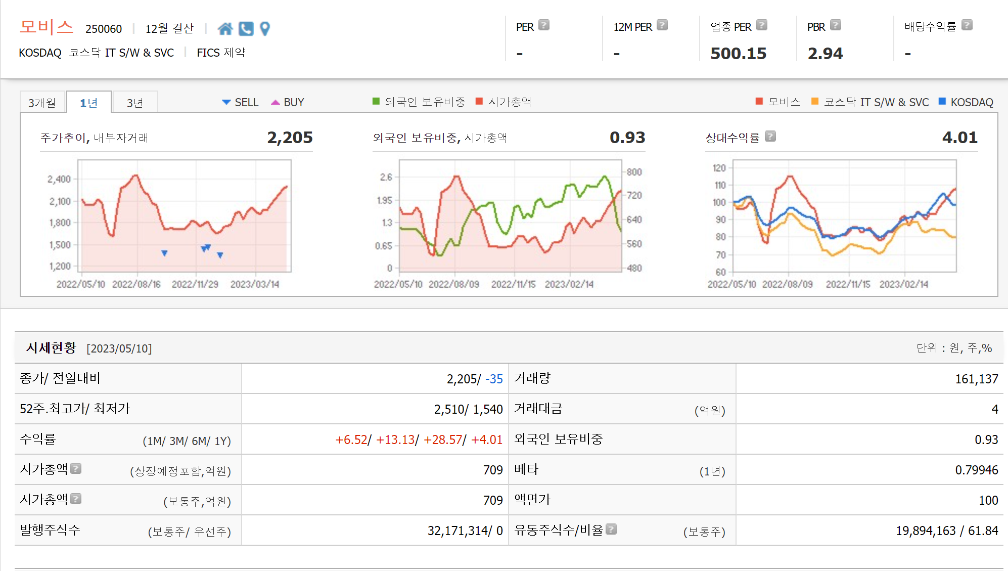 모비스의 매출은 2020년 139억, 2021년 152억, 2022년 197억을 달성하였으며,