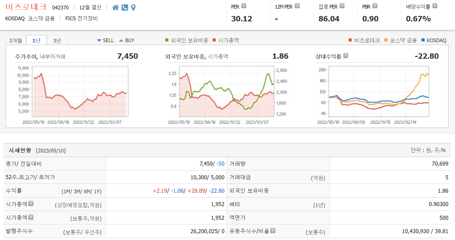 비츠로테크는 KOSDAQ 시장에 2000/08/03에 상장한 기업이며 종목코드는 042370입니다.
