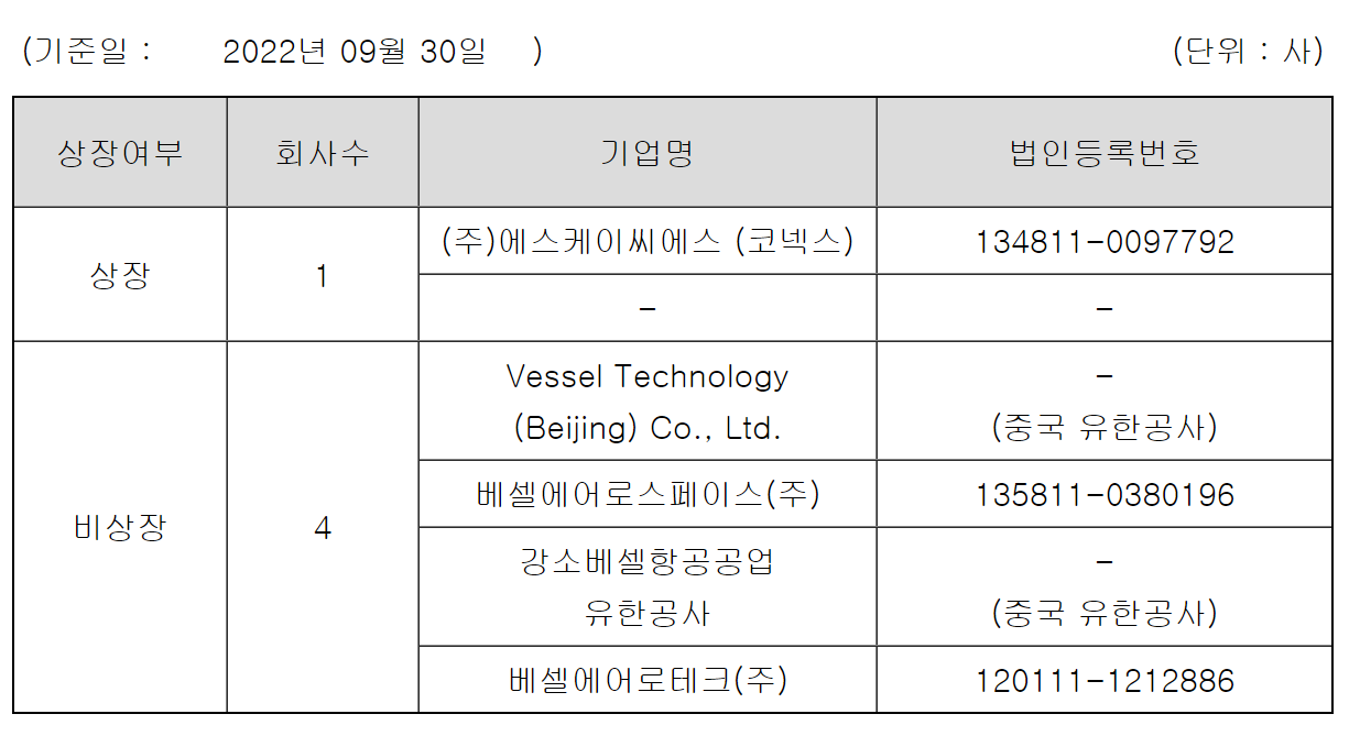 베셀은 디스플레이생산용 등 특수목적 제조장비를 개발, 제조하는 사업을 하고 있으며, 주요종속회사인 주식회사 에스케이씨에스는 플라스틱필름제조 등의 사업을 영위하고 있습니다. 베셀 기업 자체는 디스플레이 사업을 하지만 자회사인 베셀에어로스페이스로 인해 UAM 관련주로 편입되어 있습니다.