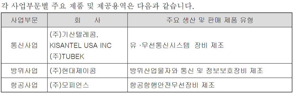기산텔레콤은 이동통신중계기, Wibro중계기, VDSL, VoIP, MSPP 및 Echo Canceller 등 유선 및 무선통신시스템장비를 제조ㆍ판매하고 있습니다. 자회사인 (주)현대제이콤에서는 방위산업물자와 통신 및 정보보호장비 제조 사업을 (주)모피언스에서는 항공항행안전무선장비 제조 사업을 영위 중입니다. 기산텔레콤이 UAM 관련주로 편입된 이유는 자회사인 모피언스의 영향이 있습니다.
